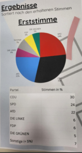Unsere Reaktion auf die Ergebnisse der Juniorwahl war, dass wir erstens überrascht sind, dass die CDU und die SPD fast gleich viele Stimmen hatte. Zweitens sind wir persönlich ein bisschen